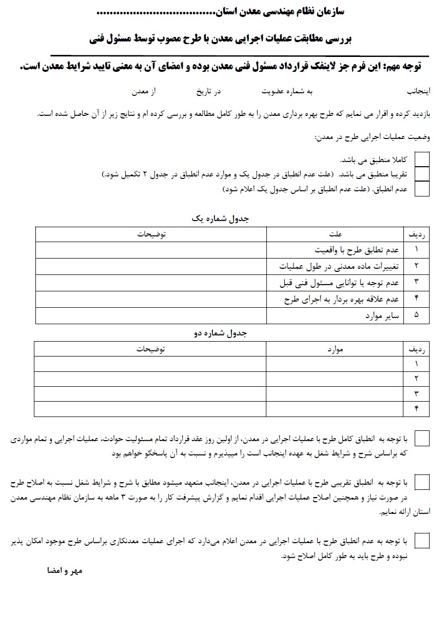 فرم تعهدنامه (پیوست قرارداد مسئول فنی معدن)